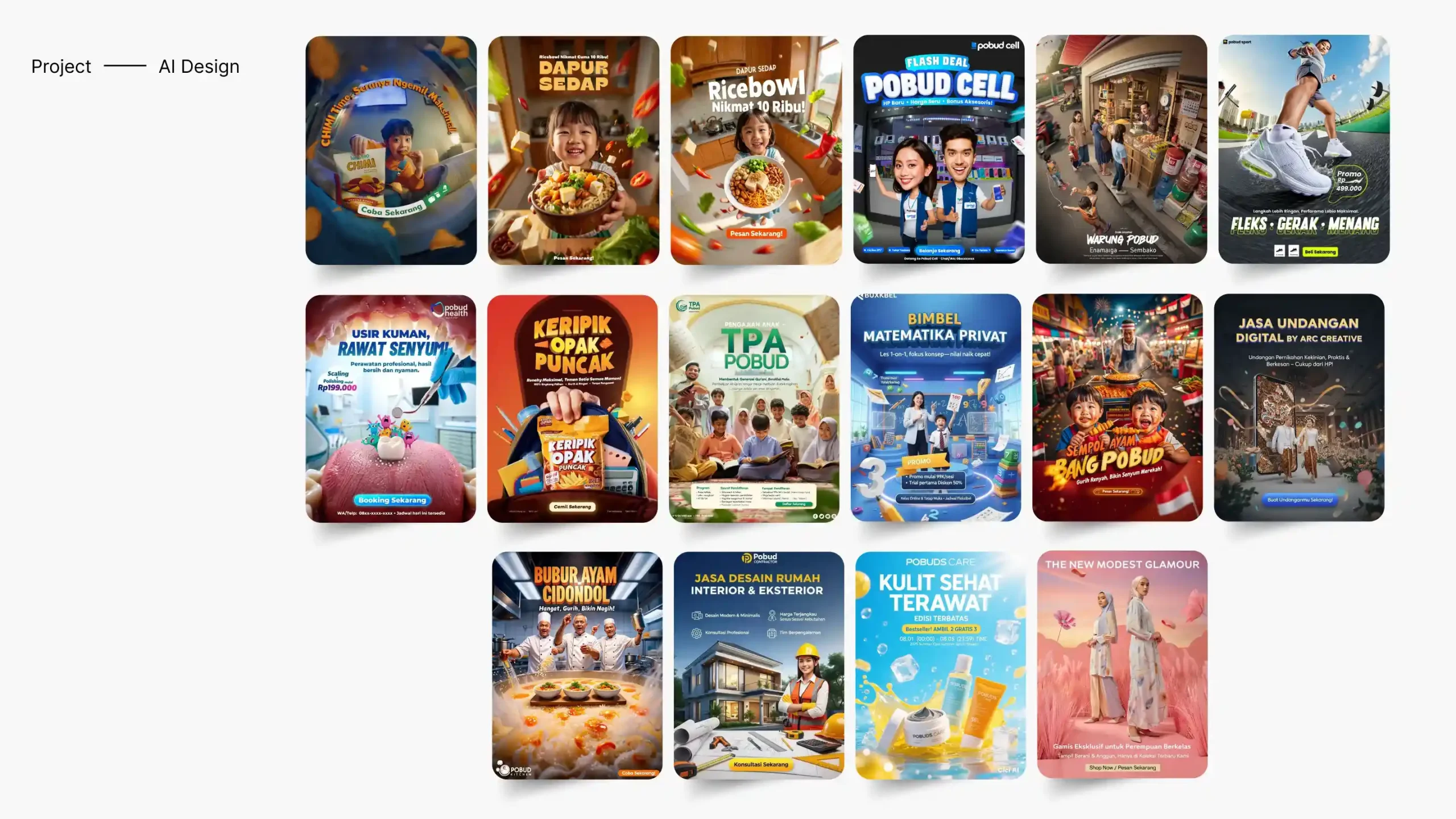 Saya memanfaatkan Adobe Firefly, Gemini, dan ChatGPT dengan prompt terkini untuk menghasilkan konsep & visual yang siap kampanye lintas industri (F&B, retail, education, health, fashion, B2B).